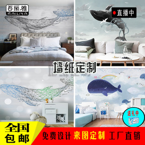北欧简约鲸鱼3D电视背景墙壁纸 儿童房客厅卧室壁画...