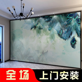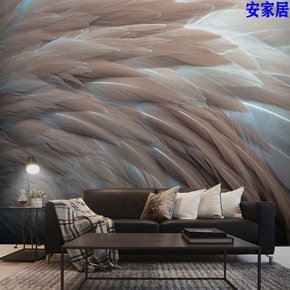 羽毛电视背景墙壁纸立体浮墙布客厅简约墙纸北欧风格壁...