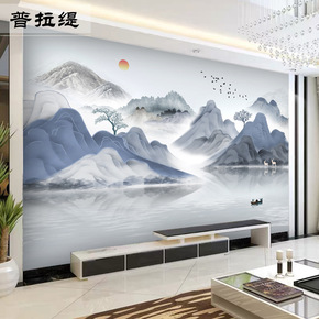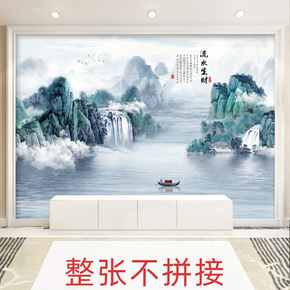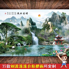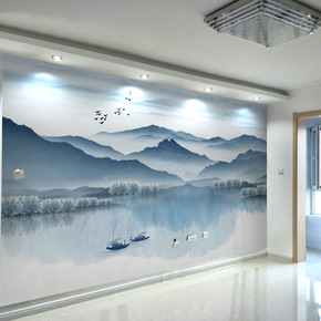 山水画贴纸壁纸自粘风景画年画墙贴墙纸墙壁贴画客厅电...