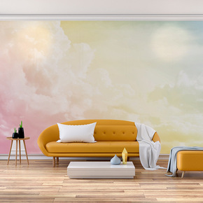 3d北欧梦幻女生房间壁画简约现代客厅卧室墙纸云朵电...
