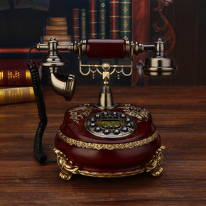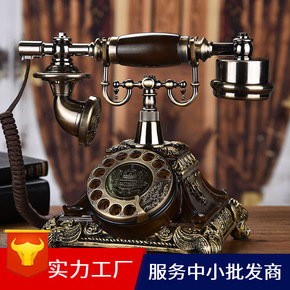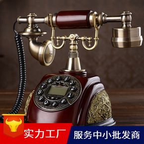 批发仿古电话机欧式复古老式实木田园家用电话座机客厅...
