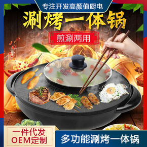 多功能涮烤一体锅家用电火锅不粘电烧烤炉烤肉机煎煮一...