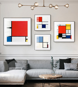 蒙德里安红黄蓝色块抽象几何装饰画客厅儿童房挂墙画电...