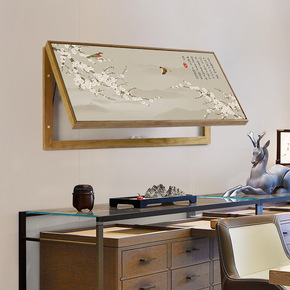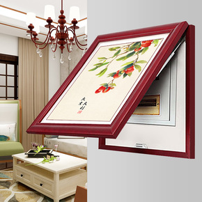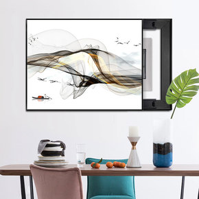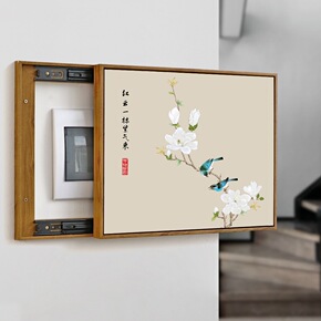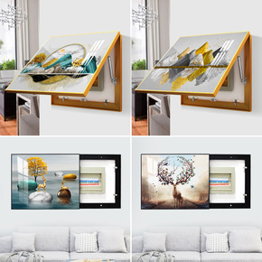 电表箱配电箱实木框新中式可推拉免打孔电闸盒客厅挂画...