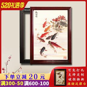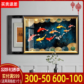 免打孔电表箱装饰画轻奢客厅挂画现代九鱼图壁画遮挡配...