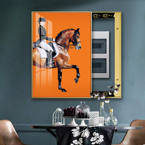 竖版电表箱装饰画现代轻奢晶瓷画骑士遮挡配电箱客厅电...