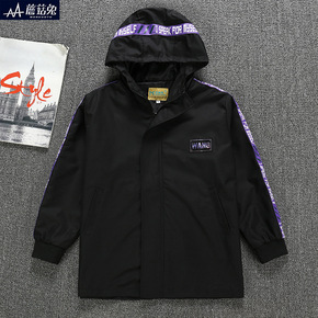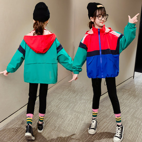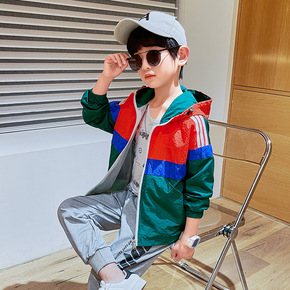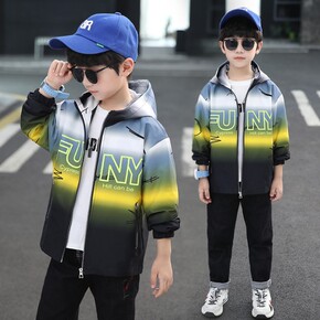2021秋款新品儿童韩版外套男童后背印花撞色连帽加...