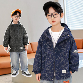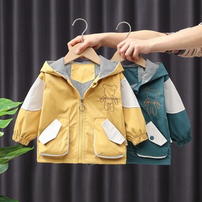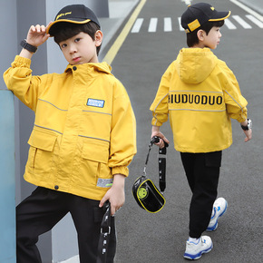 童装儿童秋季外套新款潮版男童女童棉布连帽风衣童外套...