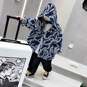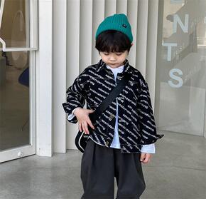 2021秋款新品韩版男童满印字母牛仔外套儿童时尚休...