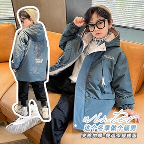 男童派克服棉服2021新款洋气中大童儿童棉袄中长款...