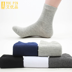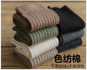 秋冬新品袜子 男士双针竖条纹棉质中筒袜 纯色吸汗透...