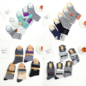 亚马逊外贸 木聪棉品 秋冬新款袜子中筒袜男士抽条粗...