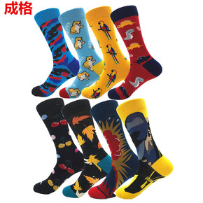 秋冬复古文艺抽象油画系列人物头像男士棉中筒袜子...