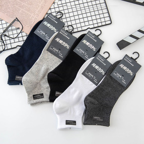 日式无印男士棉袜子良品商务休闲男袜纯色五分袜吸汗秋...