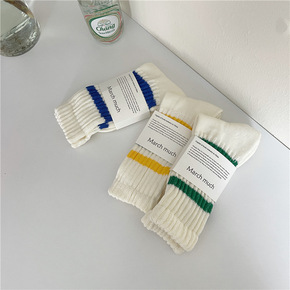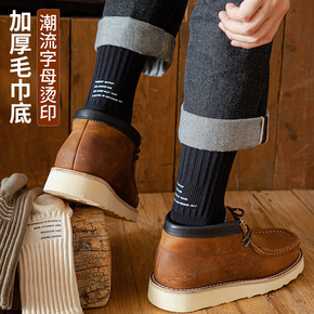 秋冬新款情侣袜子中筒毛巾底堆堆袜条纹男运动棉袜加厚...