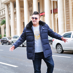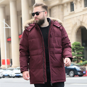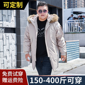 中长款冬装加大码男纯色加厚羽绒服特大号肥佬防寒保暖...