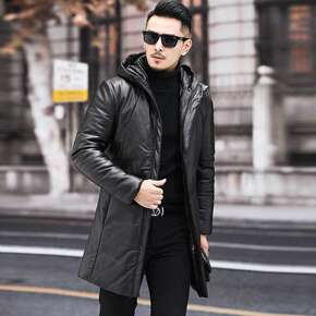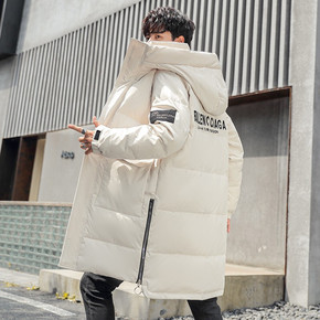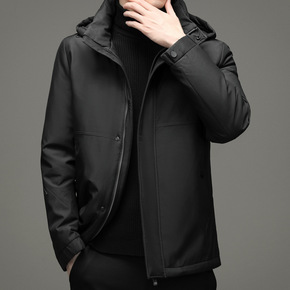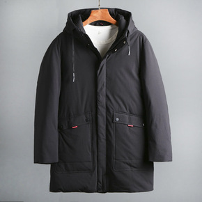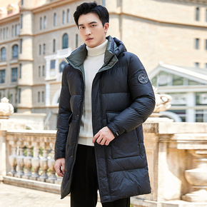 简欧冬季新款白鸭绒连帽羽绒服男加厚青年羽绒服中长户...