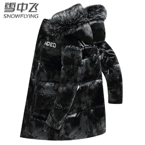 雪中飞中长款羽绒服男加厚貉子毛领防水亮面青年帅气休...