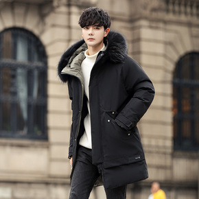 中长款羽绒服男款高端潮牌真毛领加厚派克服男士新款冬...