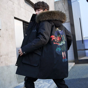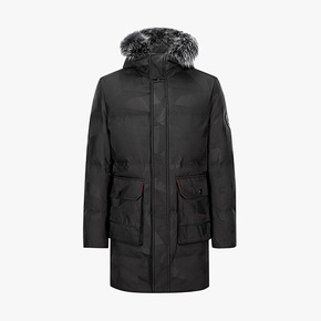品牌剪标冬季男士连帽可拆卸狐狸毛条休闲印花中长款羽...