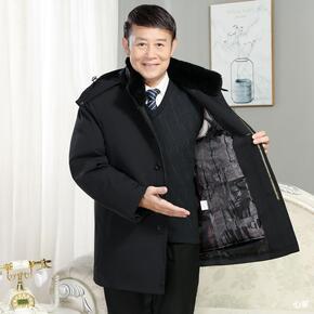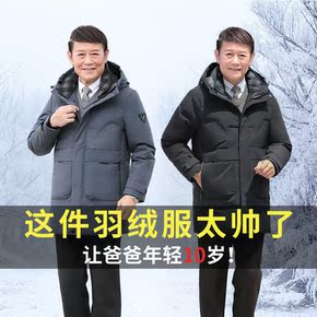 中老年羽绒服男士爸爸装冬季加厚中长款派克服连帽冬装...