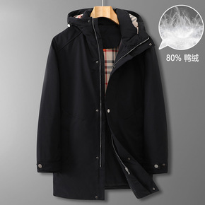 品牌羽绒服冬季可脱卸内胆中长款连帽加厚保暖白鸭绒男...