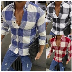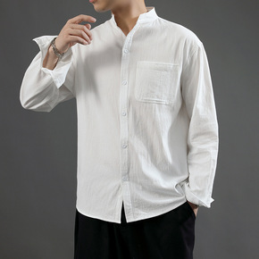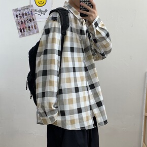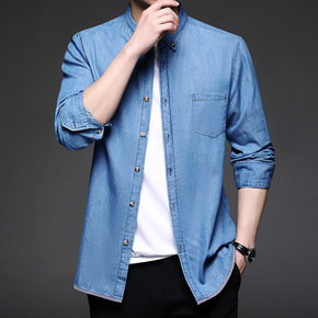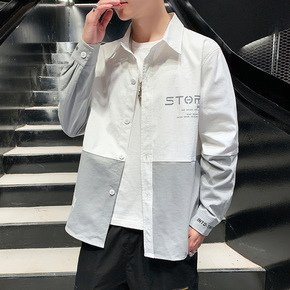 2021男士衬衫青少年长袖衬衣男休闲修身翻领外套男...