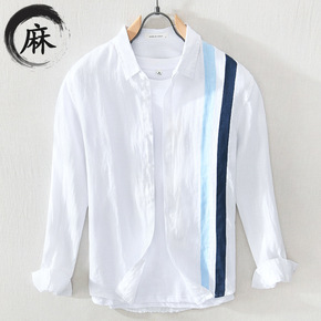 纯棉春秋季新款男士长袖衬衫修身外套男休闲潮流工装牛...