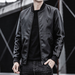 2021秋冬新款男士休闲夹克潮流皮衣男休闲外套跨境...