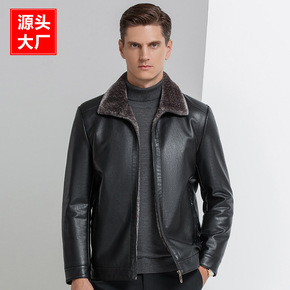 中老年冬装男式翻领短款pu皮衣皮夹克加绒加厚皮毛一...