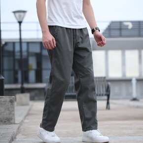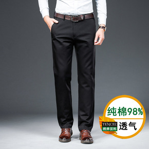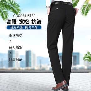 纯棉直筒休闲裤男2021秋冬厚款中年高腰宽松休闲长...