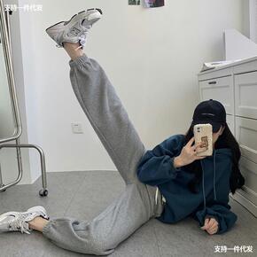 秋冬纯色休闲卫裤男潮牌简约街头宽松休闲复古加大情侣...