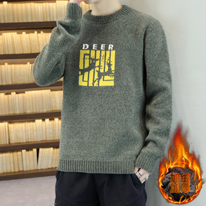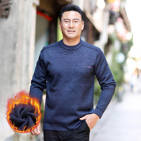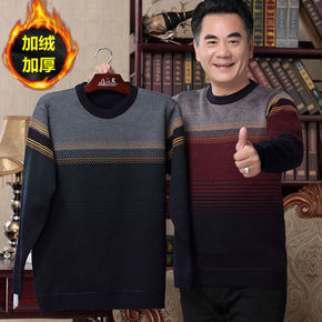 爸爸装冬季加绒加厚毛衣中年男士大码针织衫中老年男装...