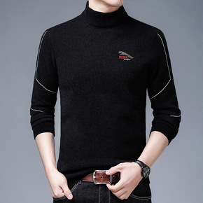 冬季加绒加厚雪尼尔半高领毛衣男时尚修身潮流休闲打底...