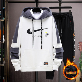 冬季青少年加绒连帽卫衣运动套装加厚14-18岁初中...