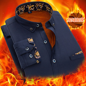 花公子休闲长袖衬衫男士冬季保暖商务韩版加绒加厚修身...