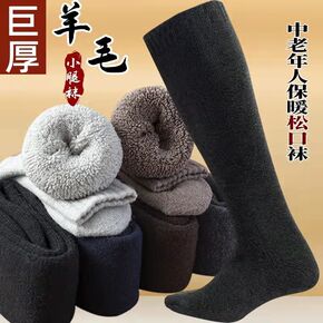厚袜子老年人小腿男秋冬加绒加高筒防寒保暖松口长筒冬...