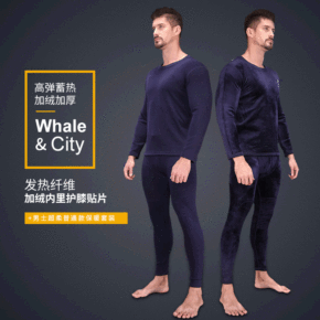新款男士保暖内衣德绒发热无痕加绒纯棉打底秋衣裤秋裤...