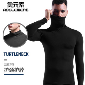 新款男士中高领德磨毛加绒保暖打底衫单件半领透气秋上...