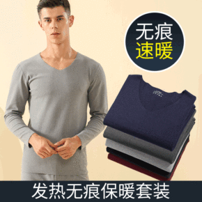 新款无痕德绒保暖内衣男套装加绒加厚棉毛衫发热男士秋...