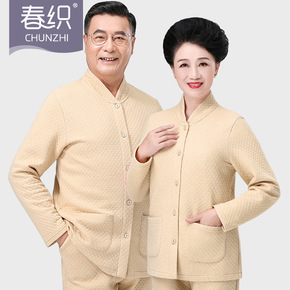 春织夹棉三层加厚立领开衫保暖单件上衣中老年人长袖口...
