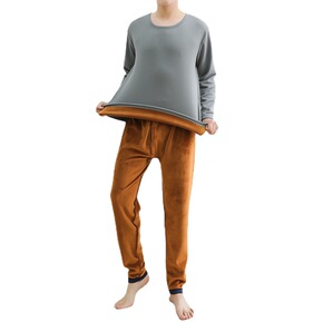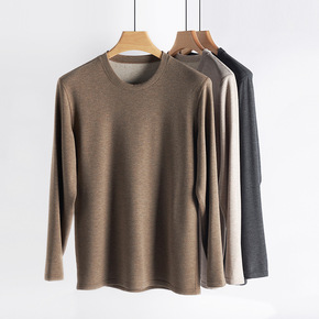 中老年男士保暖内衣加厚加绒圆领秋衣秋裤套装男线衣线...