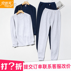 宜而爽内衣 三层加厚棉质男士圆领棉毛衫裤秋衣秋裤套...
