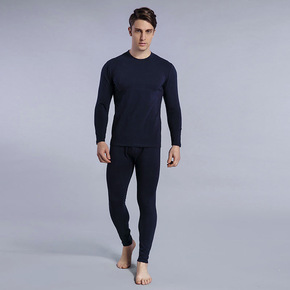 男羊毛蚕丝保暖内衣套装双面绒德绒发热圆领上衣男士发...