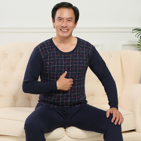 男士中领秋衣秋裤套装精梳棉中领保暖打底纯色内衣套装...