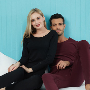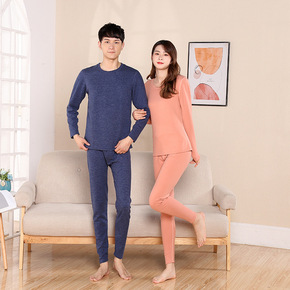 蚕丝保暖内衣套装 圆领打底棉毛衫秋冬男女速热打底秋...