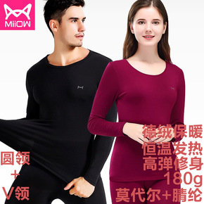 猫人秋冬季热力绒男款女款套装秋衣秋裤圆领磨绒加厚保...