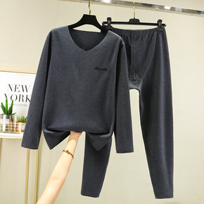 无痕保暖内衣男加厚加绒德绒发热秋衣秋裤套装大码剌绣...