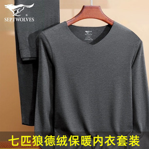 七匹狼V领全棉秋衣套装纯色男士保暖衣秋冬纯棉男内衣...