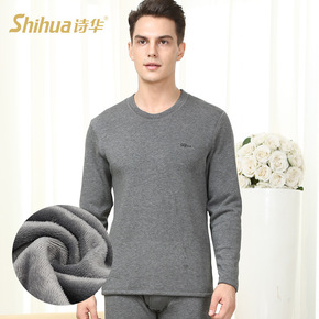 冬季男士不倒绒纯色保暖内衣加厚加绒热能上衣赶集地摊...